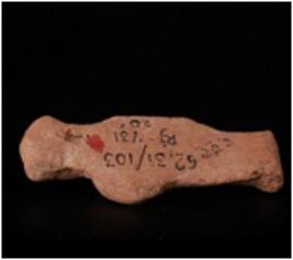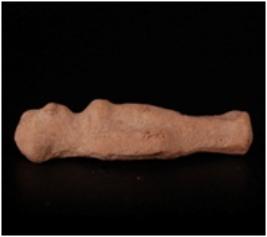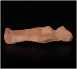 | Description / विवरण | Mould made terracotta a standing female figurine. It has lean body. Left hand is shown resting on the waist and right hand hangs freely. |