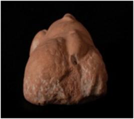 | Description / विवरण | Fragment of terracotta the head portion of human figurine. It has flat nose, small thick lips, chubby cheeks, pointed chin and elaborate hairdress and adorned with ear ornaments. |