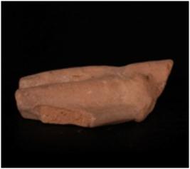 | Description / विवरण | Mould made terracotta represents a standing human. It has lean body with left hand resting on the waist. |