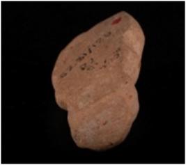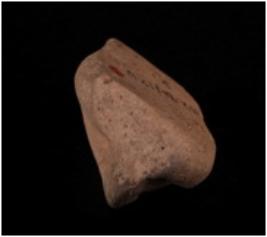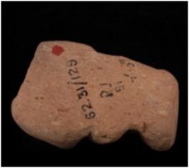| Description / विवरण | Fragment of mould made terracotta plaque the torso of a human figurine in squatting posture on a pedestal and hands are in anjali mudra. |