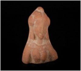 | Description / विवरण | Fragment of terracotta female bust. It has eloborate headress circular breasts and adorned with ear ornaments. |