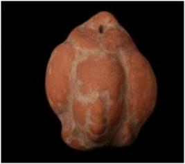 | Description / विवरण | A terracotta human head, decorated fan shape head dresses and improminent facial features. |