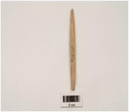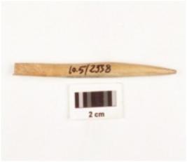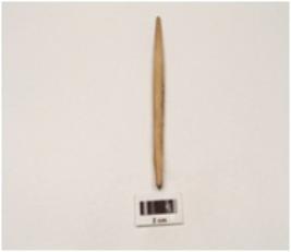 | Description / विवरण | Fragment of a bone point tapering towards pointed end with smooth and polished surface, light brown in colour, broken along other end. |