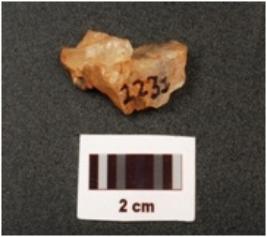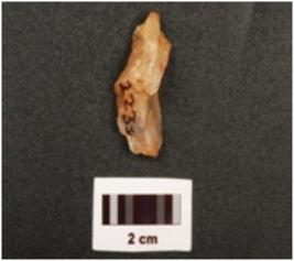 | Description / विवरण | Flake made on quartz, bulb absent, use ware marks along the cutting edge, flake scars marks visible on surface, |