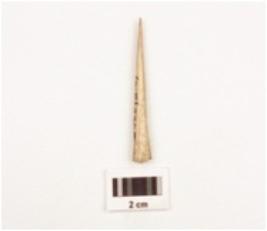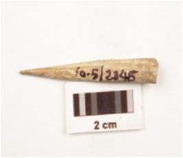 | Description / विवरण | Fragment of a bone point tapering towards pointed end, smooth polished surface, rectangular in section, broken along other end. |