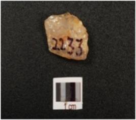 | Description / विवरण | Flake made on quartz, bulb absent, flake scars marks visible on dorsal surface, |