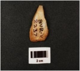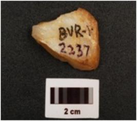 | Description / विवरण | Flake made on quartz, cortex visible on lateral side, bulb absent, use ware marks on cutting edge, broken at distal end, |