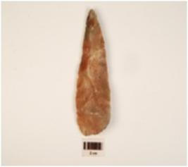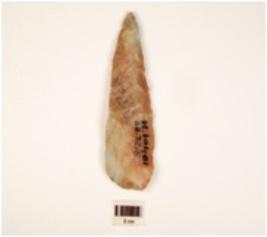 | Description / विवरण | A handaxe made of chert, flake scars on the surface and regular retouches on working edges. |