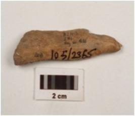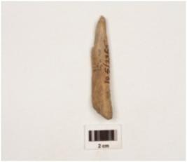 | Description / विवरण | Fragmentry bone point tapering towards painted end with broken tip, grains on the surface, light brown in colour, other end is broken. |