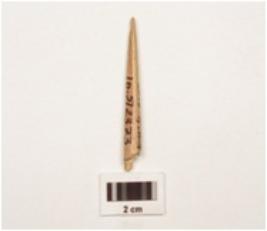 | Description / विवरण | Bone point, pointed one end other end is broken smooth and polished surface, |