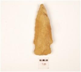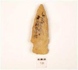 | Description / विवरण | Arrow head made of chert, triangular shaped, retouched edges, tanged and barbed. |