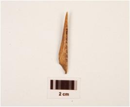 | Description / विवरण | Fragment of bone point with polished surface at one side & porous surface at other side, broken at pointed end, rectangular cross section |