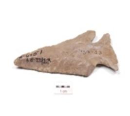 | Description / विवरण | Arrow-head made of chert, triangular, barbed, tanged, retouched edges and one barb broken. |