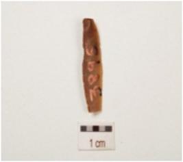| Description / विवरण | Chert, parallel sided blade with two ridge on dorsal side, striking platform, diffused bulb on ventral side, use wear marks on cutting edge, broken from distal end and trapezoidal in section. |