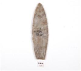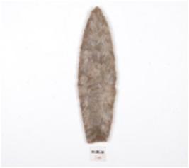 | Description / विवरण | A spearhead made of chert, leaf shaped, projectile point and retouched on both surfaces. |
