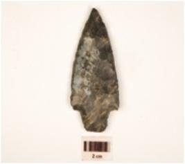 | Description / विवरण | An arrow head made of chert, tanged, retouches on working edges and flake scars on the surface. |