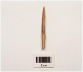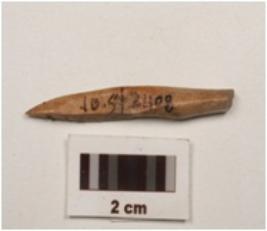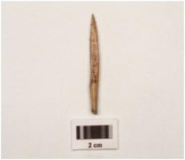 | Description / विवरण | Bone point, one end is pointed and other end broken, smooth and polished surface, |
