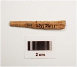 | Description / विवरण | Bone point with polished surface broken at pointed end, triangular cross section |