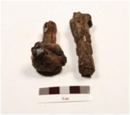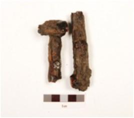 | Description / विवरण | Fragment of a iron nail, broken into two pieces, uneven surface and circular head. |