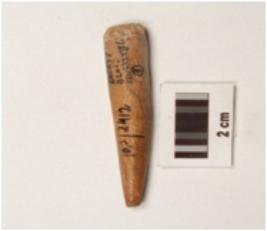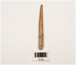 | Description / विवरण | Fragment of bone point , broken on both ends, polished and smooth surface slightly damaged surface, |