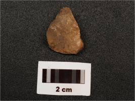 | Description / विवरण | Quartz flake with prepared platform, three flake scars, diffused bulb on ventral side, use wear mark along cutting edges, |