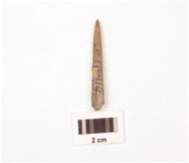 | Description / विवरण | Bone point , pointed one end other is broken slightly chipped off from surface, polished surface, |