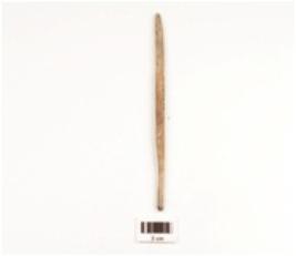 | Description / विवरण | Bone point with smooth and polished surface tapering towards pointed ends, brown in colour. |