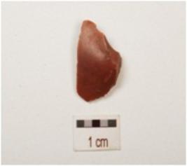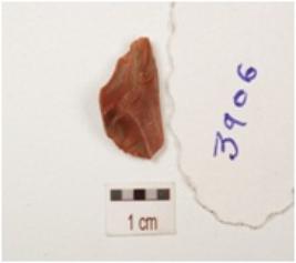 | Description / विवरण | Fragment of chert blade with on improminent ridge on dorsal side, prepared platform, bulb on ventral side, broken distal end, use wear marks on cutting edges and triangular in section. |