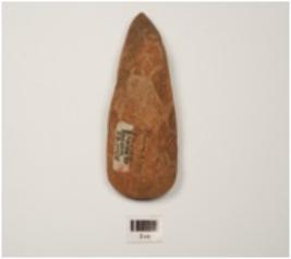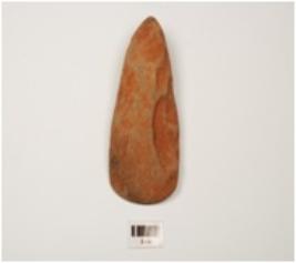 | Description / विवरण | A stone celt, sharp edge, damage surface, polished surface and spherical butt end. |
