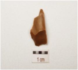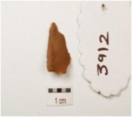 | Description / विवरण | Fragment of a chert blade with a mid ridge on dorsal side, broken along at proximal end, use wear marks on cutting edges and triangular in section. |