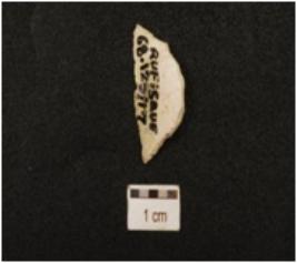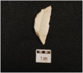 | Description / विवरण | A lunate made of chert, pointed both ends, sharp cutting edge, partly retouched cutting edge, blunted one lateral side, ridge on surface and quadrangular cross section. |
