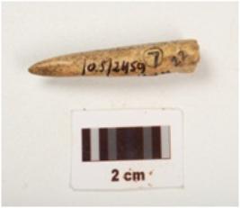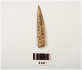 | Description / विवरण | Fragment of a point, smooth surface with a pointed end, partly broken from other end, light brown in colour and rectangular in section |