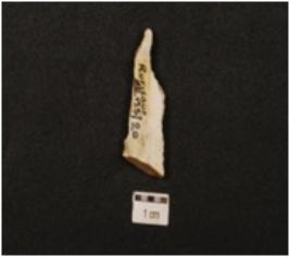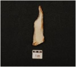 | Description / विवरण | A point made of chert, pointed distal end, broad flat proximal end, flake scars on surface, rectangular cross section. |