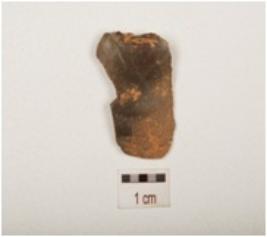 | Description / विवरण | A flake made on chert, used ware marks on cutting edge flake scars on dorsal surafce and plano convex in section, |