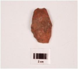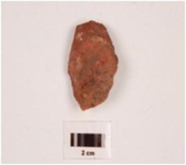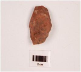 | Description / विवरण | A stone scraper made of chert, dark buff in colour, surface has stone flakes, diffused bulb on proximal end, along with prepared platform. |