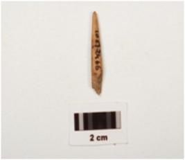 | Description / विवरण | Fragment of a point , polished surface with a pointed end, other end is broken, light brown in colour and circular in section |