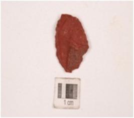 | Description / विवरण | Scraper made of chert, dark brown in colour, mid ridge marks on dorsal side and diffused bulb on ventral side and along with prepared platform, use wear marks on edge. |