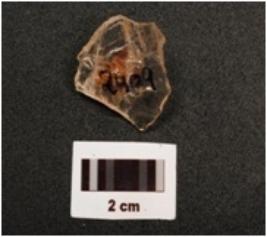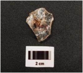 | Description / विवरण | A flake with flake scars on surface, made with quartz stone, smooth surface, |