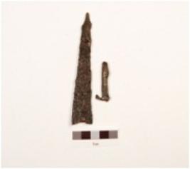 | Description / विवरण | Fragments of iron arrow head, broken into two pieces, pointed top and broken tang. |