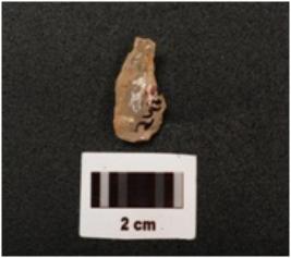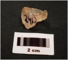 | Description / विवरण | A flake made on quartz stone, flake scars on surface, smooth surface, |