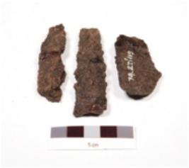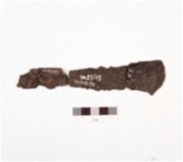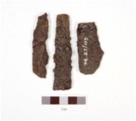| Description / विवरण | A iron chisel, broken in three pieces, broad edge, flat surface and sections. |