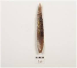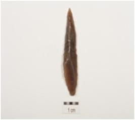 | Description / विवरण | A point made of chert, retouched along the lateral sides, other end is pointed, prominent bulb on ventral side. |