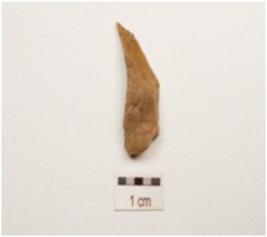 | Description / विवरण | A flake made on chert, end struck flake, flat one end pointed other end and flake scars on surface. |