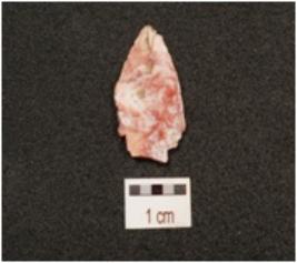 | Description / विवरण | A flake made on chert, used ware marks on cutting edge, flake scars on both surface ripple marks on ventral surface and rectangular in section, |