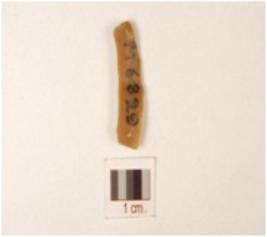 | Description / विवरण | Chert blade with triangular cross section, use-wear marks along the cutting edge, prepared platform and bulb absent. |