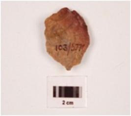 | Description / विवरण | A side scrapper with prepared platform of the ventral side, made on chert, positive bulb, sharpened cutting edges. |