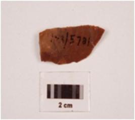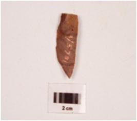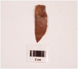 | Description / विवरण | Chert blade with a ridge of the dorsal side and pointed at one end, it has prepared platform and bulb on the ventral side, sharpened along the cutting edges. |