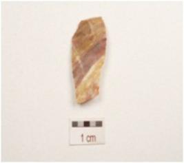 | Description / विवरण | A flake made on chert, end struck flake, prepared striking platform prominent bulb on ventral, use ware marks on cutting edge, flake scars on dorsal and triangular in section. |