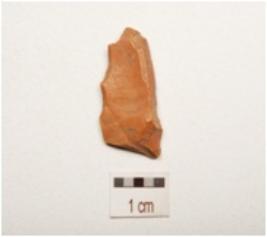 | Description / विवरण | A side scraper made on chert, end struck flake prepared striking platform prominent bulb on ventral retouched cutting edge, broken distal end, flake scars on dorsal surface and triangular in section. |