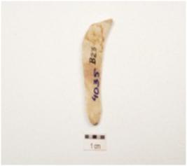 | Description / विवरण | A chert blade with double ridge on dorsal, diffused bulb on ventral, prepared platform, trapezoidal section use wear marks on cutting edge and broken along distal end. |